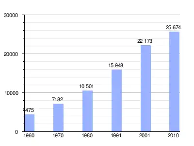 | Gráfica de evolución demográfica de San Isidro entre 1960 y 2010 |