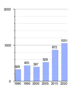 | Gráfica de evolución demográfica de San Isidro entre 1990 y 2020 |