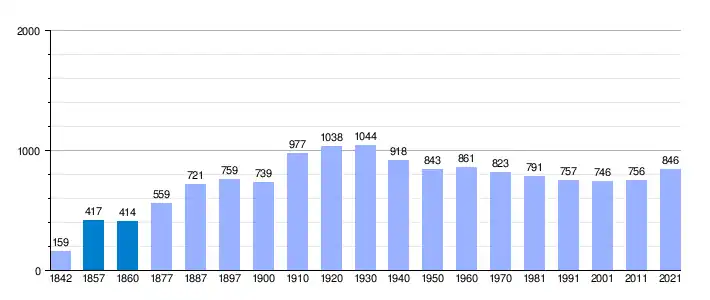 | Gráfica de evolución demográfica de San Jaime de Llierca[3] entre 1842 y 2021 |