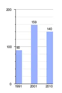 | Gráfica de evolución demográfica de San Joaquín entre 1991 y 2010 |