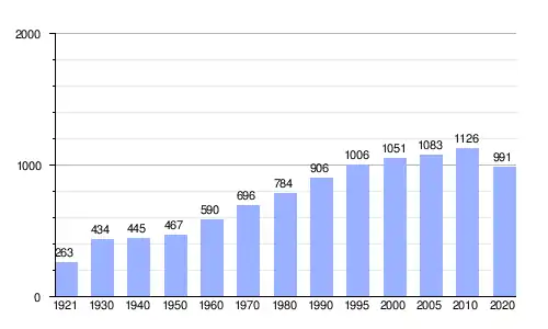 En 2020 registró una población de 991 personas, lo que corresponde al 2.63 % de la población municipal.[7] De los cuales 482 son hombres y 509 son mujeres.[7]