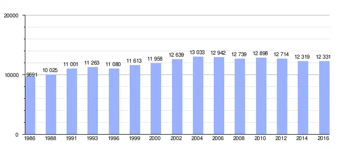 | Gráfica de evolución demográfica de San Juan Bautista entre 1986 y 2016 |