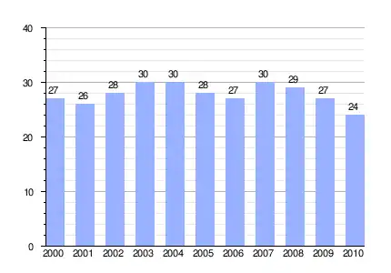 Población de derecho (2000-2010) según los censos de población del INE a 1 de enero de cada año.[1] |
