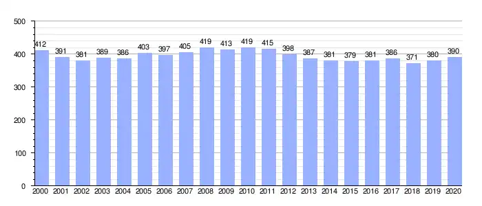 | Gráfica de evolución demográfica de San Justo[2] entre 2000 y 2020 |