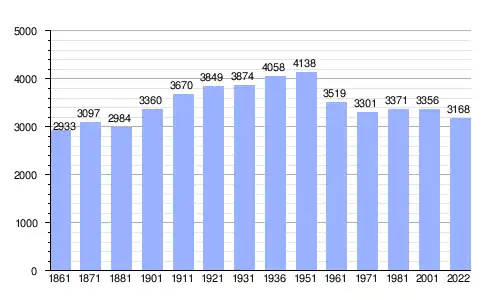 | Gráfica de evolución demográfica de San Lorenzo in Campo entre 1861 y 2022 |