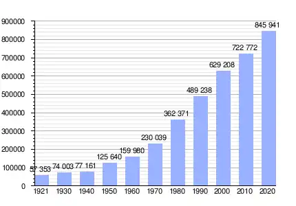 La ciudad de San Luis Potosí cuenta según los datos del censo de 2020 publicado por el Instituto Nacional de Estadística y Geografía con una población de 845 941habitantes,[9] que la coloca como la 18.ª ciudad más poblada de México mientras que su zona metropolitana se ubica como la 12.ª área metropolitana más poblada de México al contar con una población de 1 243 980 habitantes.[10][11][12][13] El centro histórico de la ciudad es reconocido como Patrimonio de la Humanidad por parte de la Unesco. Su importante y acelerado desarrollo industrial ha favorecido de manera positiva en el crecimiento económico y demográfico de la zona.