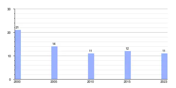 | Gráfica de evolución demográfica de San Mamed (lugar) entre 2000 y 2023 |