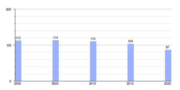 | Gráfica de evolución demográfica de Lousada (parroquia) entre 2000 y 2020 |