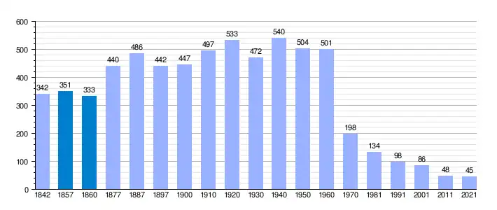 | Gráfica de evolución demográfica de San Martín de Boniches[4] entre 1842 y 2021 |