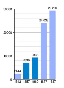 | Gráfica de evolución demográfica de San Martín de Provensals[10] entre 1842 y 1887 |