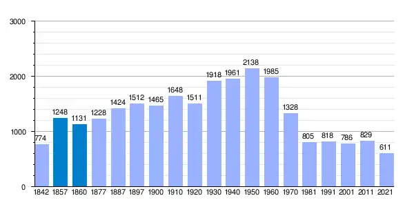| Gráfica de evolución demográfica de San Martín de Pusa[2] entre 1842 y 2021 |