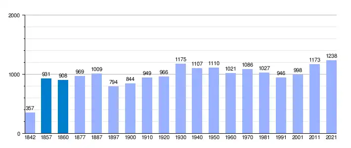 | Gráfica de evolución demográfica de San Martín de Tous[7] entre 1842 y 2021 |