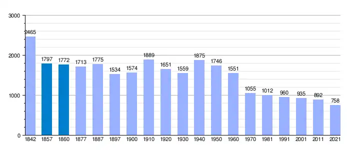 | Gráfica de evolución demográfica de San Martín de Trevejo[4] entre 1842 y 2021 |
