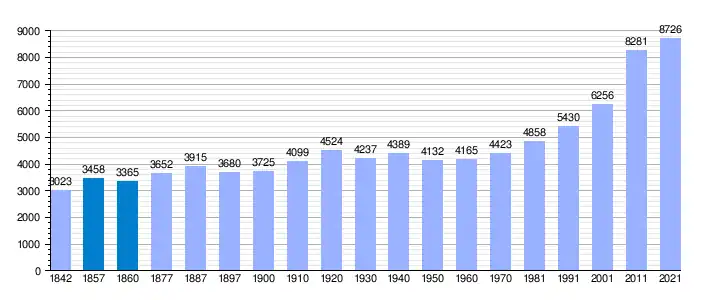 | Gráfica de evolución demográfica de San Martín de Valdeiglesias[7] entre 1842 y 2021 |