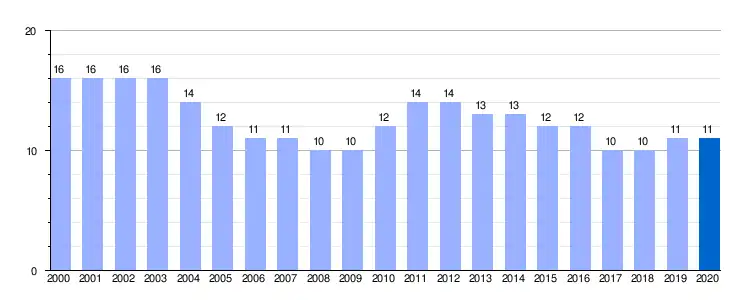 | Gráfica de evolución demográfica de San Martín de los Herreros entre 2000 y 2020 |
