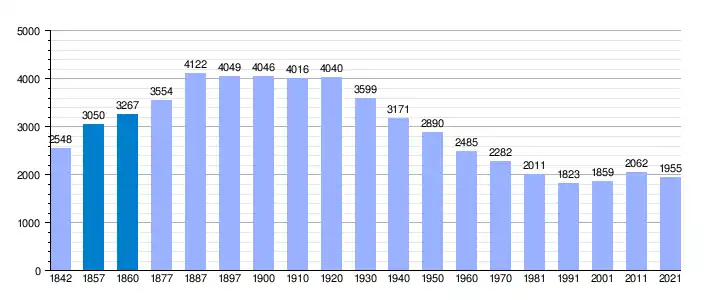 Gráfica de evolución demográfica de San Mateo[1] entre 1842 y 2021