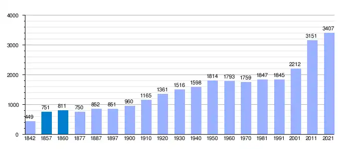 | Gráfica de evolución demográfica de San Mateo de Gállego[3] entre 1842 y 2021 |