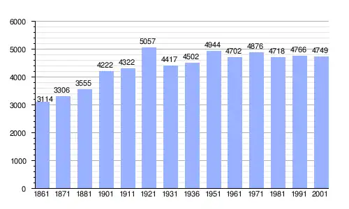 | Gráfica de evolución demográfica de San Michele di Ganzaria entre 1861 y 2001 |