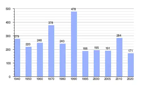 | Gráfica de evolución demográfica de San Miguel Ixcatlán entre 1940 y 2020 |