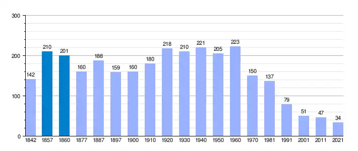 | Gráfica de evolución demográfica de San Millán de Yécora[2] entre 1842 y 2021 |