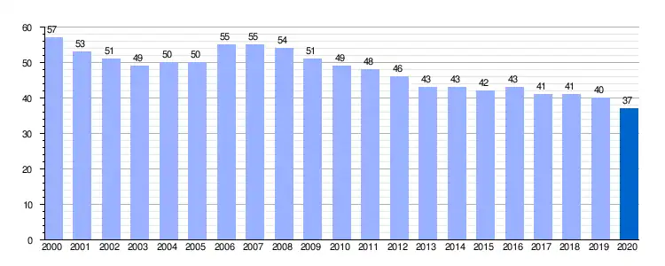 | Gráfica de evolución demográfica de San Nicolás del Real Camino entre 2000 y 2020 |