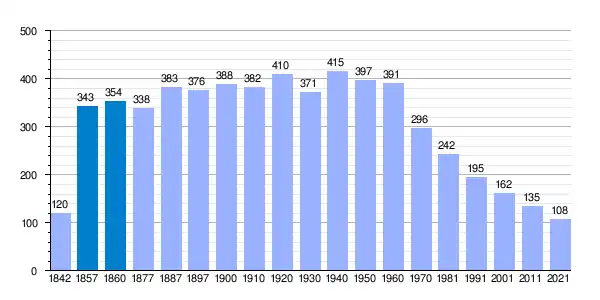 Población de derecho según los censos de población del INE Población de hecho según los censos de población del INEEntre el censo de 1857 y el anterior, crece el término del municipio porque incorpora a 475009 (Honquilana)[5] |