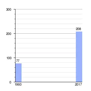 | Gráfica de evolución demográfica de San Pedro entre 1993 y 2017 |