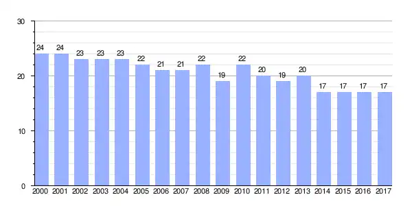 | Gráfica de evolución demográfica de San Pedro de Foncollada[2] entre 2000 y 2017 |