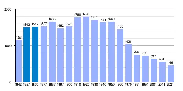 | Gráfica de evolución demográfica de San Pedro de Latarce[4] entre 1842 y 2021 |