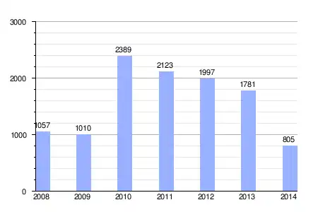 | Gráfica de evolución de la deuda viva del ayuntamiento entre 2008 y 2014 |
