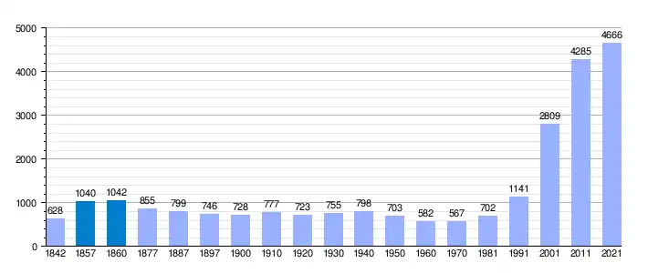 | Gráfica de evolución demográfica de San Pedro de Vilamajor[7] entre 1842 y 2021 |