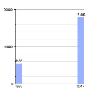 | Gráfica de evolución demográfica de San Pedro de los Incas entre 1993 y 2017 |