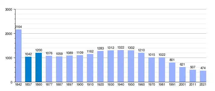 | Gráfica de evolución demográfica de San Pedro del Romeral[5] entre 1842 y 2021 |