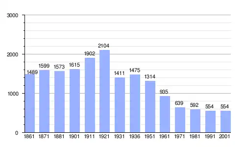 | Gráfica de evolución demográfica de San Pio delle Camere entre 1861 y 2001 |