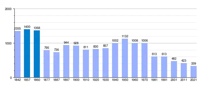 | Gráfica de evolución demográfica de San Roque de Riomiera[3] entre 1842 y 2021 |