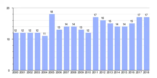 | Gráfica de evolución demográfica de San Salvador entre 2000 y 2018 |