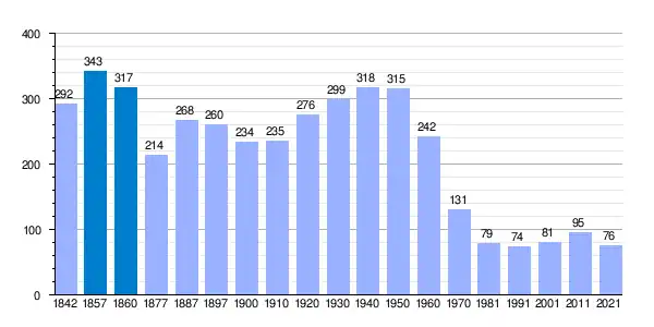 | Gráfica de evolución demográfica de San Saturnino de Osormort[5] entre 1842 y 2021 |
