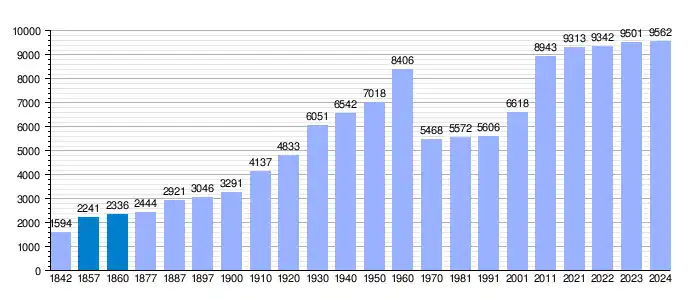 | Gráfica de evolución demográfica de San Sebastián de la Gomera[9] entre 1842 y 2024 |