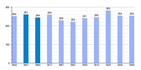 | Gráfica de evolución demográfica de San Vicente de Arana[2] entre 1842 y 1940 |