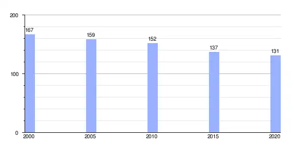 | Gráfica de evolución demográfica de Castillón entre 2000 y 2020 |