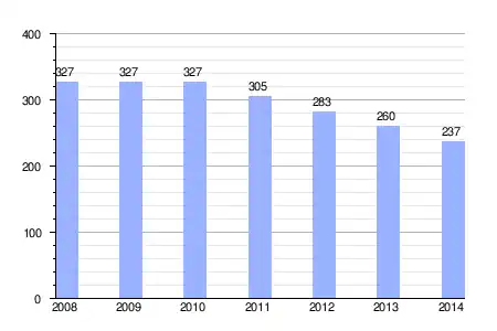 La deuda viva municipal por habitante en 2014 ascendía a 228,54 €.[13]