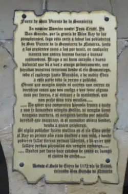 El 6 de enero de 1172 Sancho VI de Navarra concede el fuero de Laguardia a San Vicente y su alfoz. Este era semejante al Fuero de Logroño.[3][4] Su hijo Sancho VII de Navarra en 1194 levantó el castillo y amuralló la zona. Además en 1212 tras la batalla de Las Navas de Tolosa concedió el blasón de las cadenas a la Casa de la Piscina.[cita requerida]