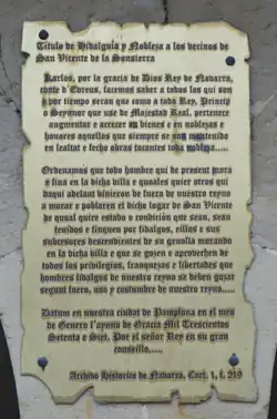 Debido a la resistencia de los habitantes de la zona frente a las tropas de Enrique de Trastámara, Carlos II de Navarra concedió hidalguía a sus habitantes y a sus descendientes. Con ello buscaba también «atraer nuevos pobladores, sea cual fuere su estado o condición.»[4]