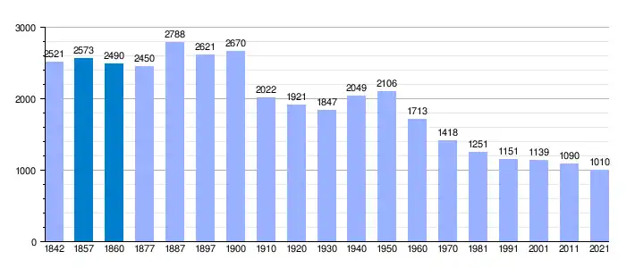 | Gráfica de evolución demográfica de San Vicente de la Sonsierra[9] entre 1842 y 2021 |