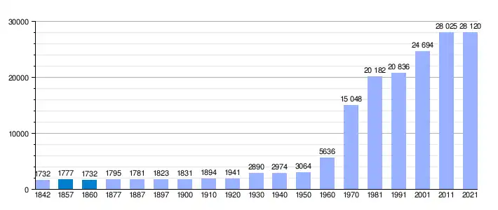 | Gráfica de evolución demográfica de San Vicente dels Horts[7] entre 1842 y 2021 |