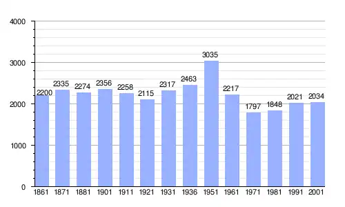 | Gráfica de evolución demográfica de San Vincenzo La Costa entre 1861 y 2001 |