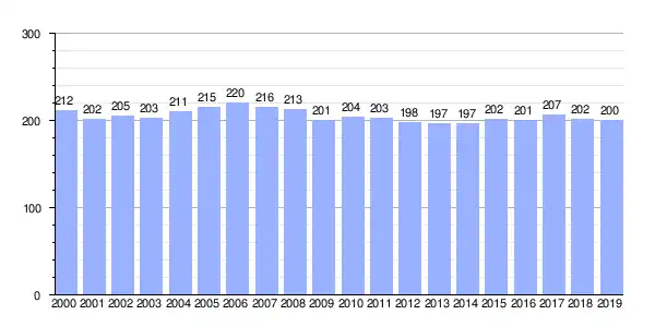 | Gráfica de evolución demográfica de Santiago entre 2000 y 2019 |
