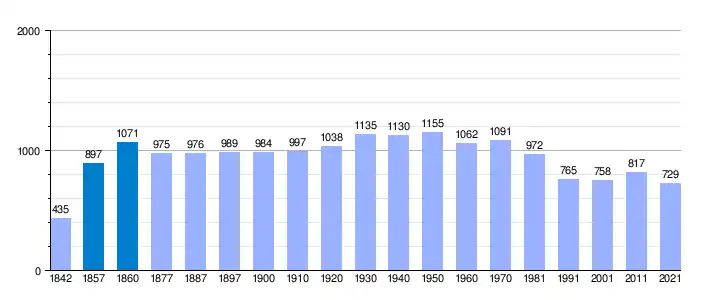 | Gráfica de evolución demográfica de Sanchidrián[11] entre 1842 y 2021 |