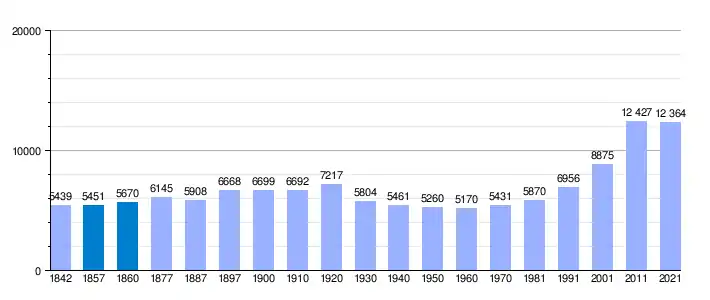 | Gráfica de evolución demográfica de Santañí[8] entre 1842 y 2021 |