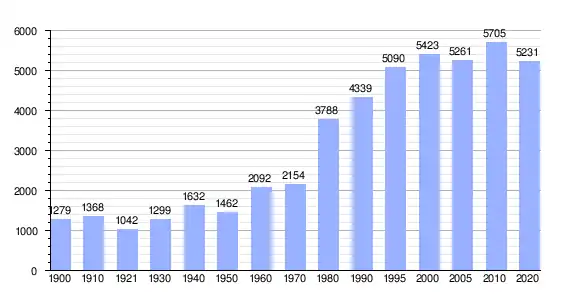 | Gráfica de evolución demográfica de Santa Ana Hueytlalpan entre 1900 y 2020 |
